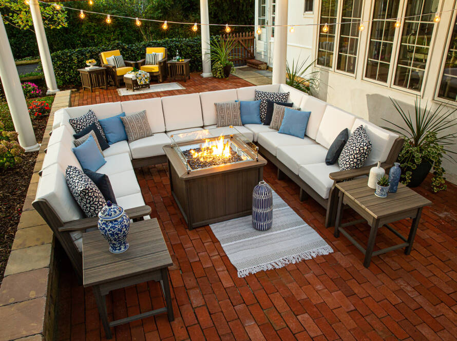 Drawing inspiration from current trends that favor comfort, lively colors, sustainable choices, and effortless beauty, we’re excited to share five inspiring porch ideas and outdoor design options. Each concept features durable, low-maintenance, easy-to-clean Finch Furniture that is crafted from 95% recycled materials. We’ve also paired complementary flowers with each furniture piece to help you design your dream summer haven.